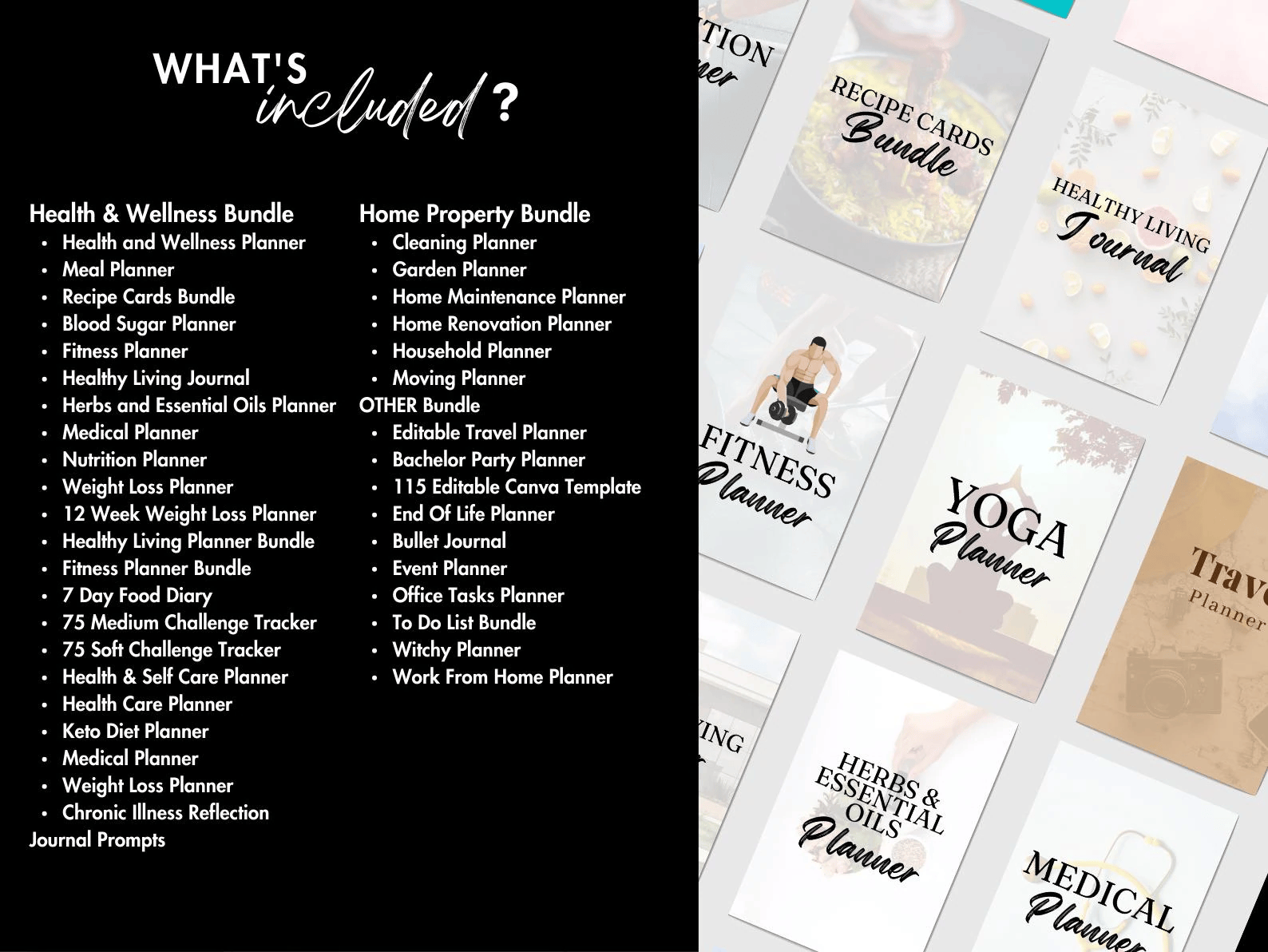 🧘♀️ Health & Wellness: Weight loss journals, Meal planners, Yoga logs, Medical trackers, and Fitness challenges (75 Soft/Medium).