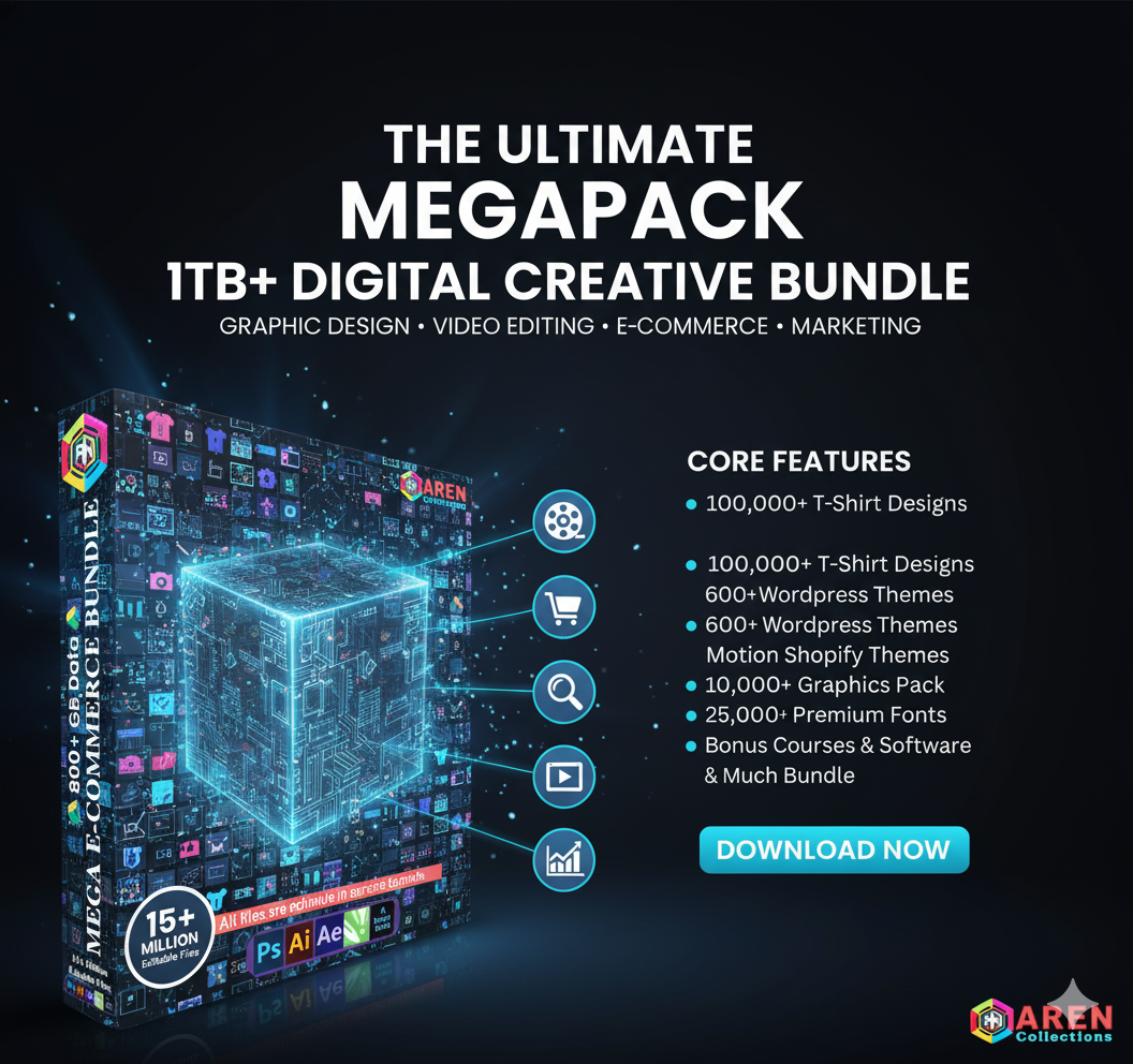 The Mega E-Commerce Mastery Bundle is your all-in-one powerhouse — packed with over 1 Terabyte of premium, editable assets designed for graphic designers, digital marketers, video editors, and online entrepreneurs.